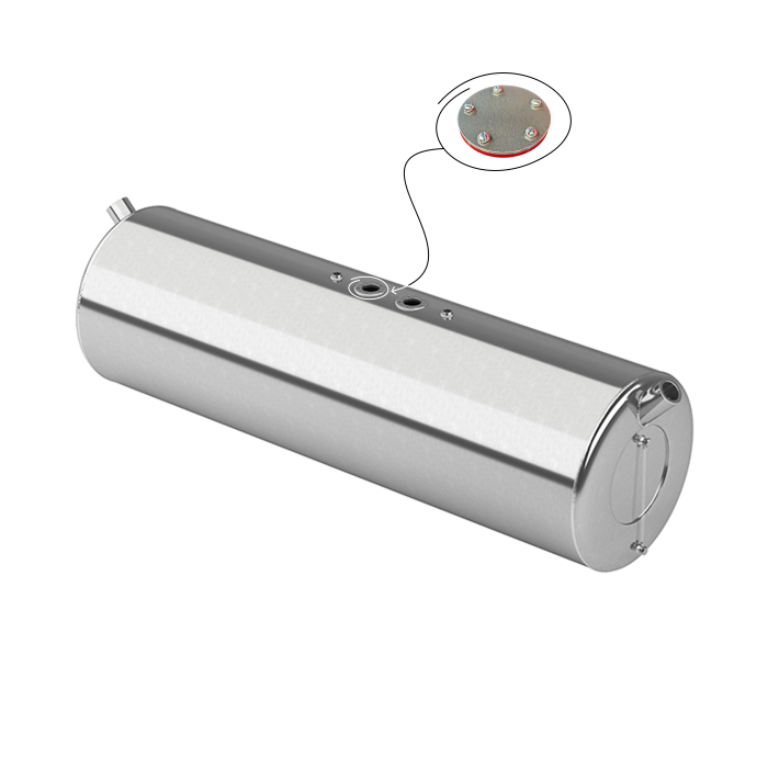 Топливный бак 220 литров производства БАКОР предназначен для установки на Рефрижератор, где предусмотрена заправка с обоих сторон. Диаметр топливного бака составляет 450 мм, по бокам установлены 2 горловины (диаметр 60мм).